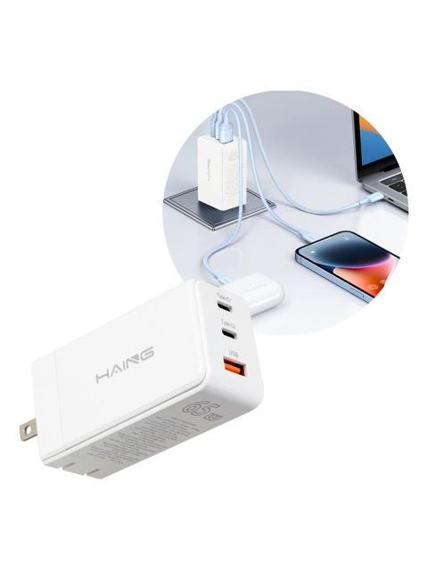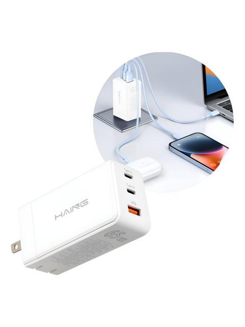CARGADOR CARGA RAPIDA TIPO C Y USB 65W 3 PUERTOS PLEGABLE BLANCO