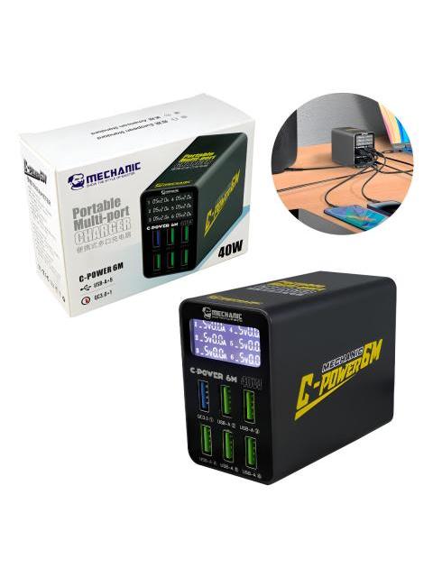 CARGADOR INTELIGENTE USB 6 PUERTOS CON PANTALLA DIGITAL 40W NEGRO