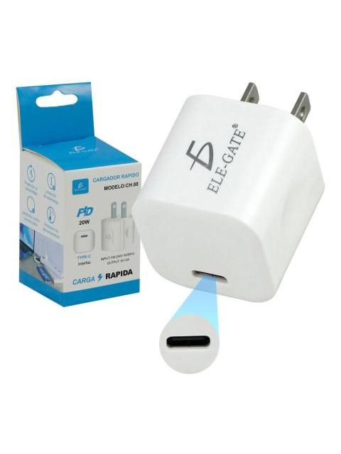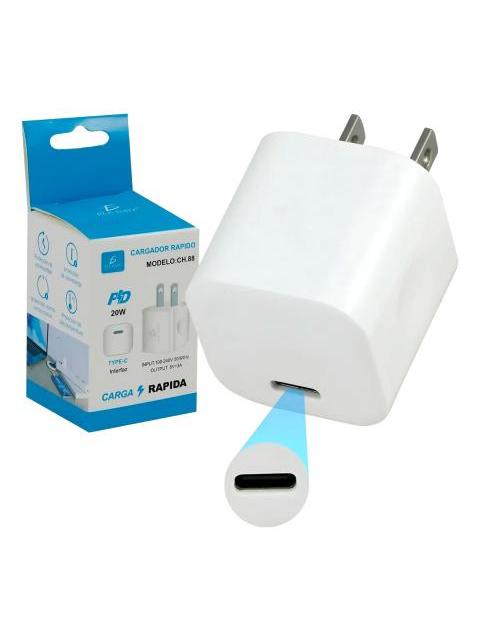 CARGADOR TIPO C CARGA RAPIDA 20W ADAPTADOR DE CORRIENTE COLOR BLANCO
