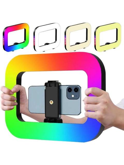 ARO DE LUZ LED RGB RECTANGULAR DE 28.5 CM RECARGABLE POR USB C CON SOPORTE AJUSTABLE PARA TELEFONO IDEAL PARA SELFIES STREAMING MAQUILLAJE Y CREADORES DE CONTENIDO SLIM COMPANY