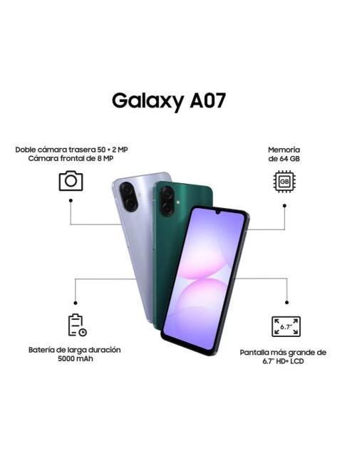 SAMSUNG GALAXY A07 LTE 6.7 128GB 4GB RAM CAMARA 50MPX - LIGHT VIOLET